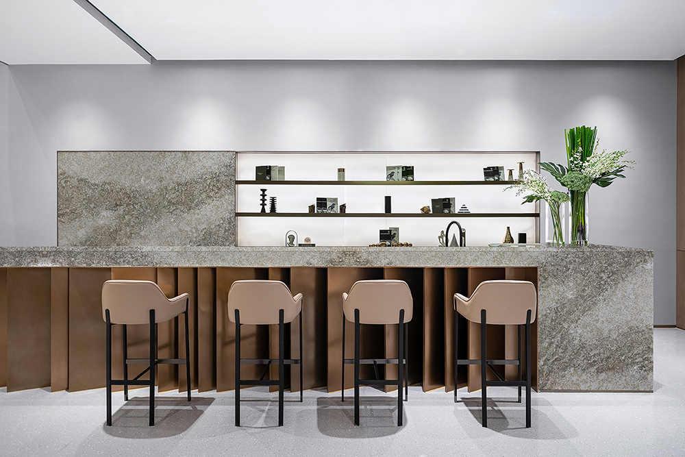 complementing the texture of the stone.